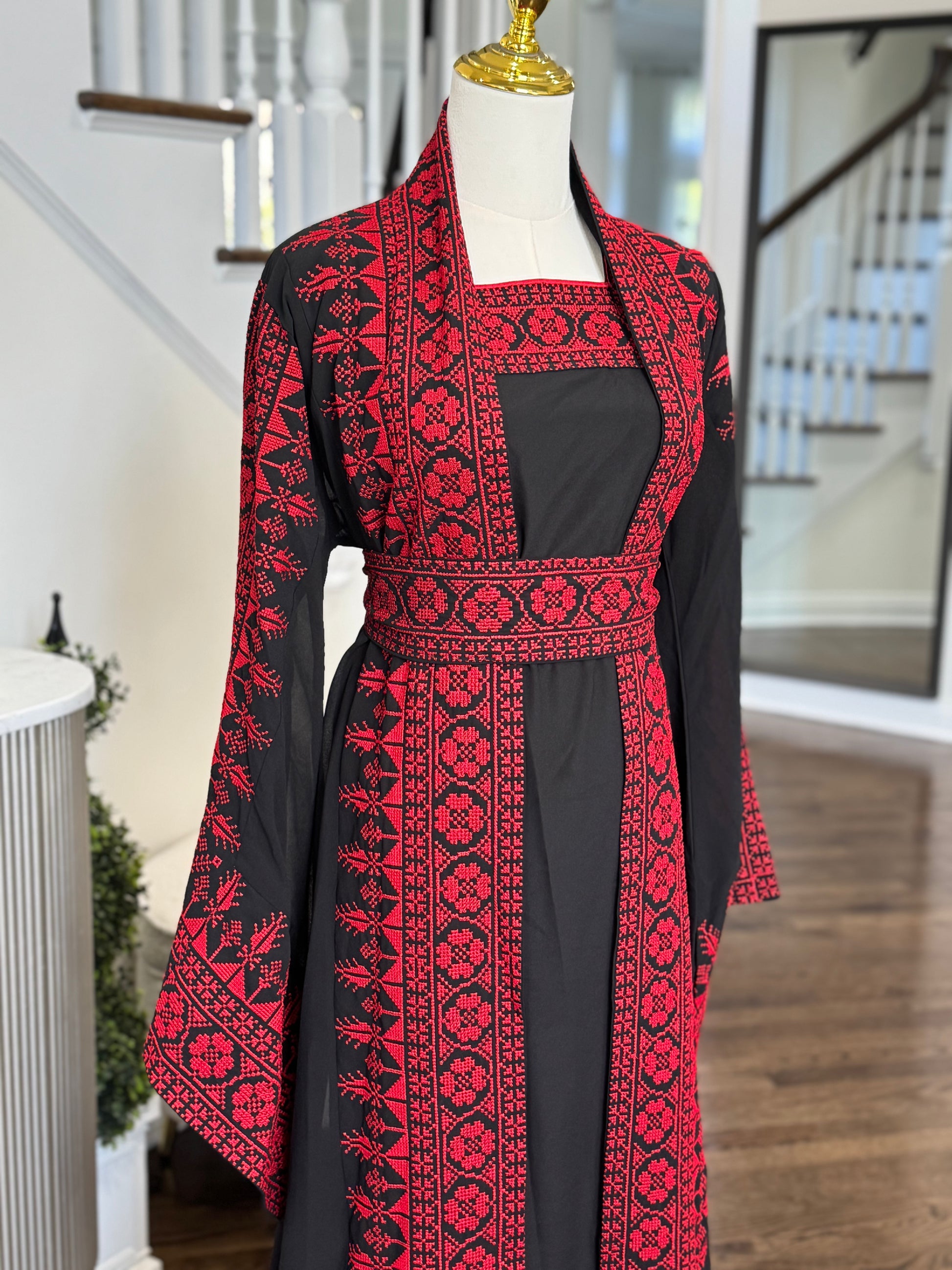 3 Pcs Palestinian Embroidered Tatreez Open Abaya Thobe