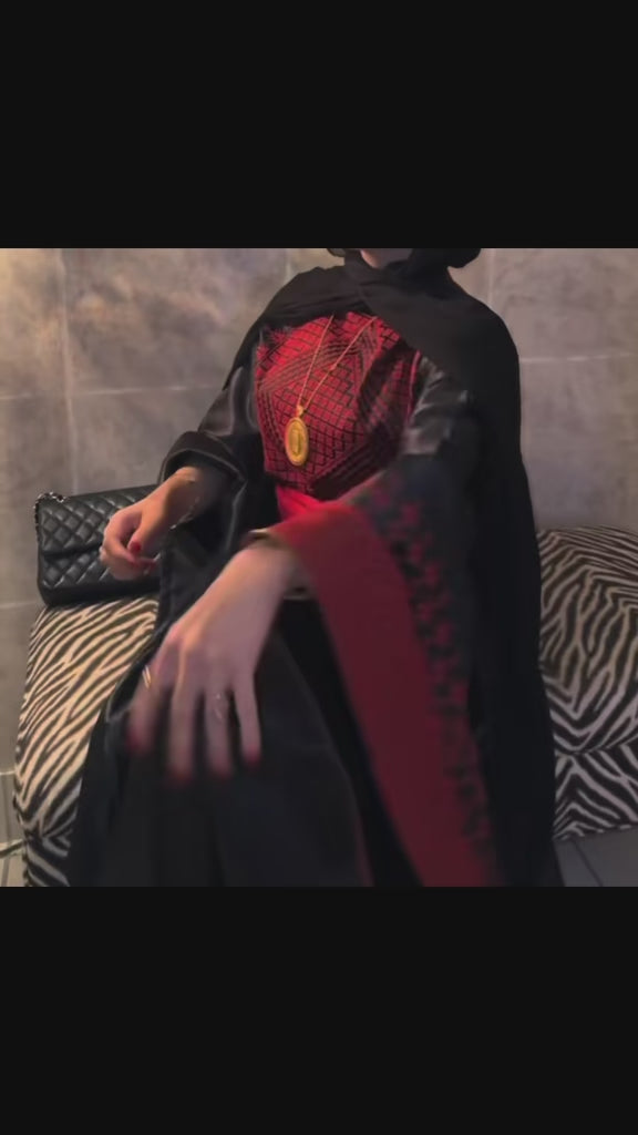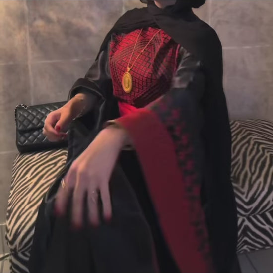 Embroidered with Beautiful red tatreez, ntricate embroidery tells a story of heritage, while the wide sleeves add a regal touch.