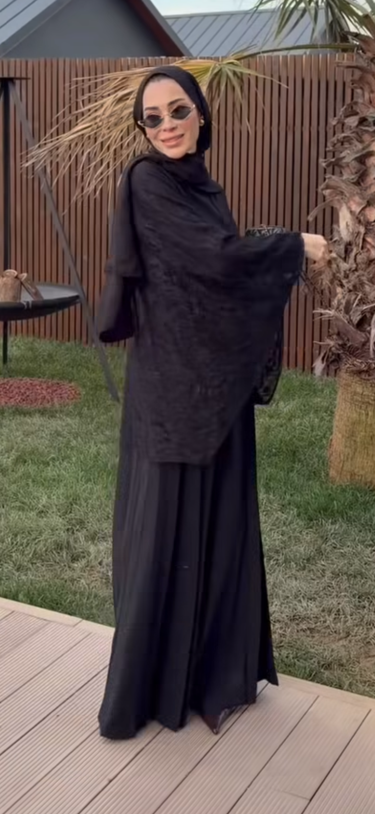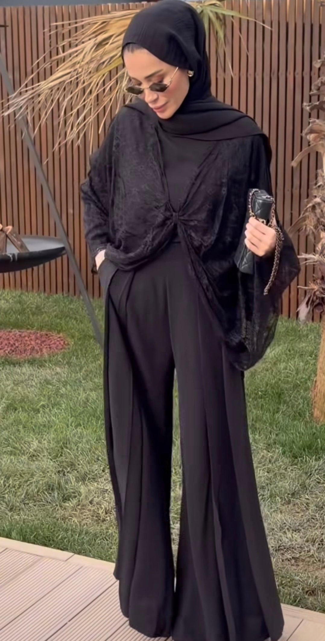 The long-sleeve inner piece provides comfortable coverage, while the wide-opening leg pants offer movement and a flattering elongated look. Designed for elegance and versatility, this set is perfect for Eid celebrations, evening gatherings, or chic special occasions.