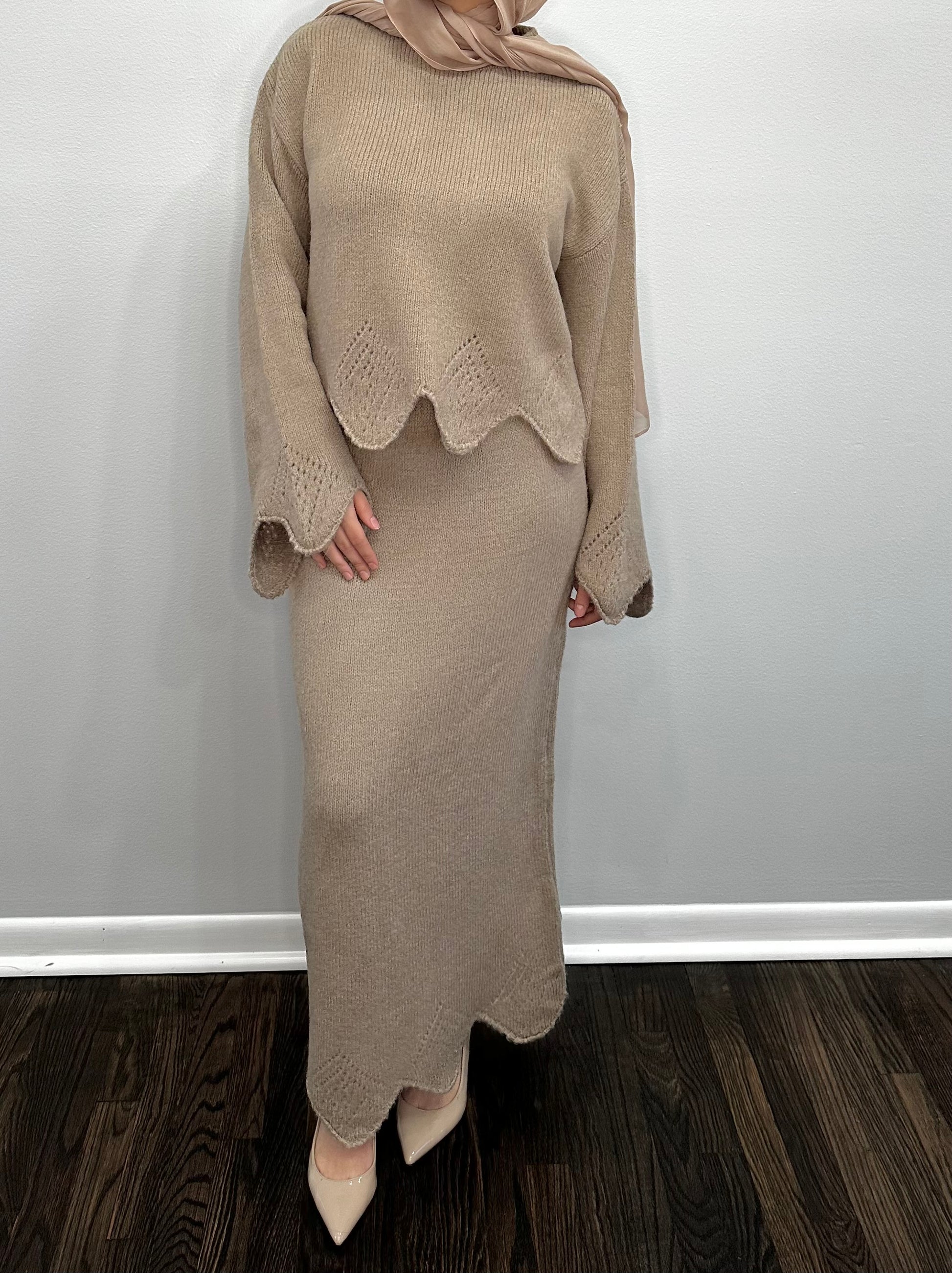 Effortlessly elegant and cozy, the Knit Fabric Set is perfect for any occasion. Crafted from soft, high-quality knit fabric, this set offers a flattering silhouette with delicate textured details, adding a touch of sophistication to your wardrobe. Designed for comfort and modesty, it's an ideal choice for staying stylish through the cooler seasons. Pair it with your favorite accessories for a timeless and chic look.
