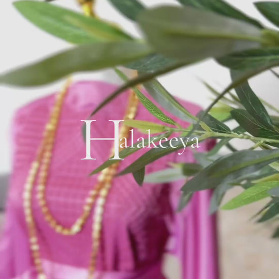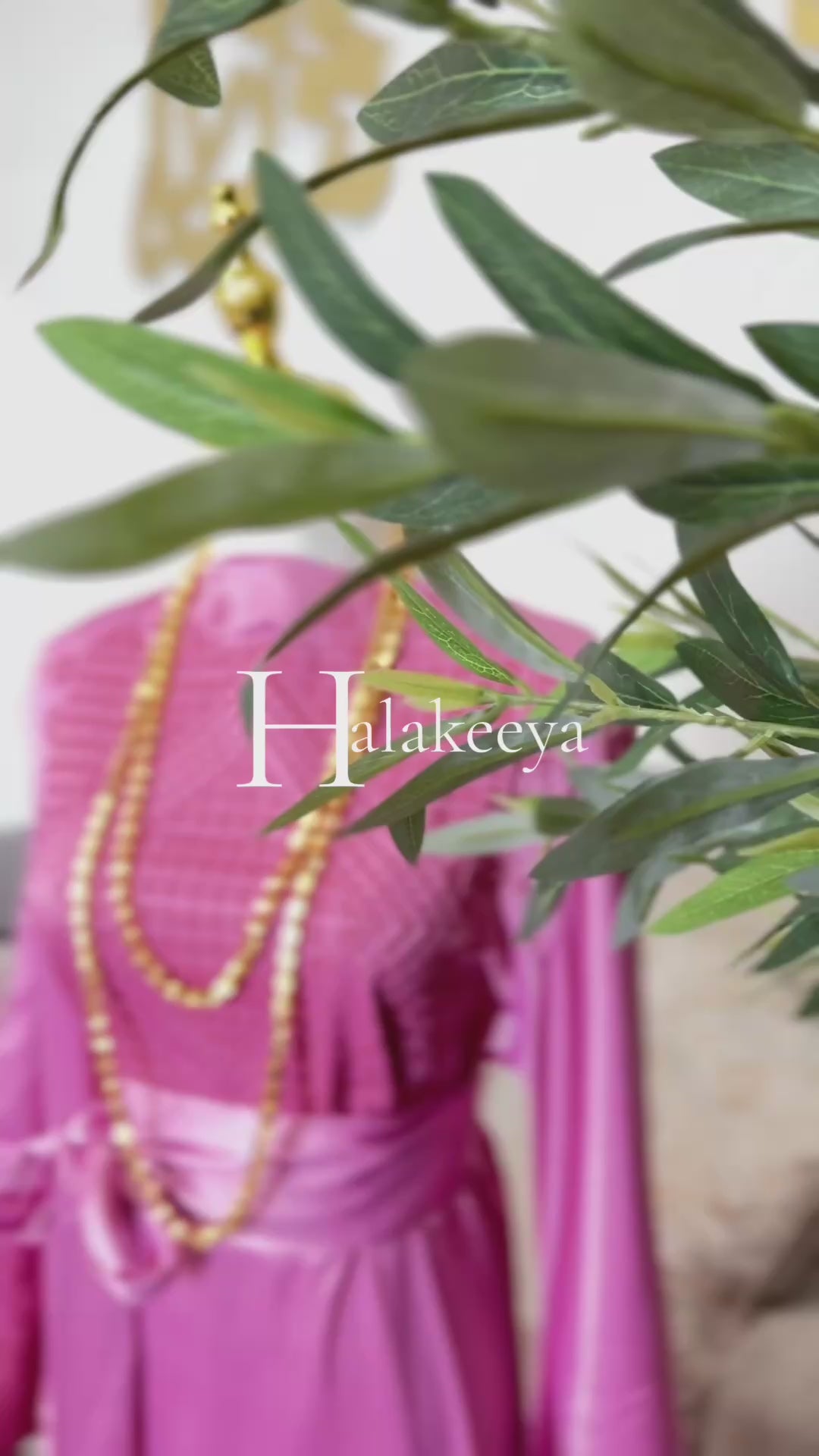 Luxurious pink satin almost matching tatreez color , it’s the first shade color in the video . that flows gracefully and catches the light.